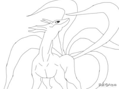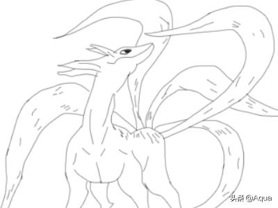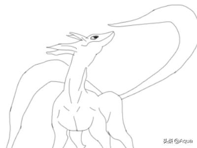 5、再在身体的后面我们再画出火影忍者尾兽的两条长长的尾巴,如图所示: