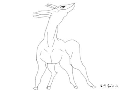 4、再画出火影忍者尾兽的身体,然后在身体的下面再画出火影忍者尾兽的两条腿后腿及蹄子,如图所示: